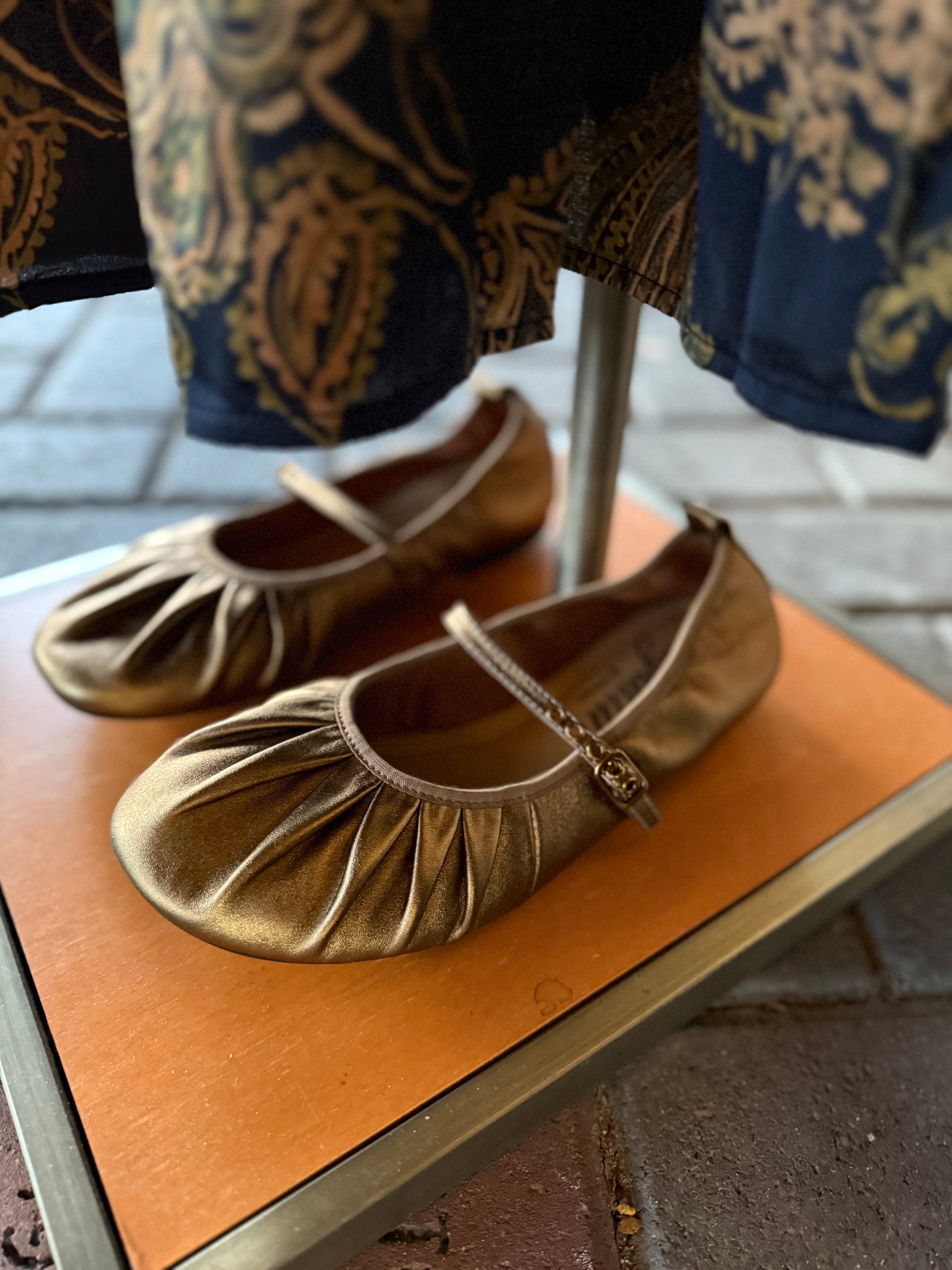 - Distinctive ruched detail on mary jane strap adds sophisticated texture