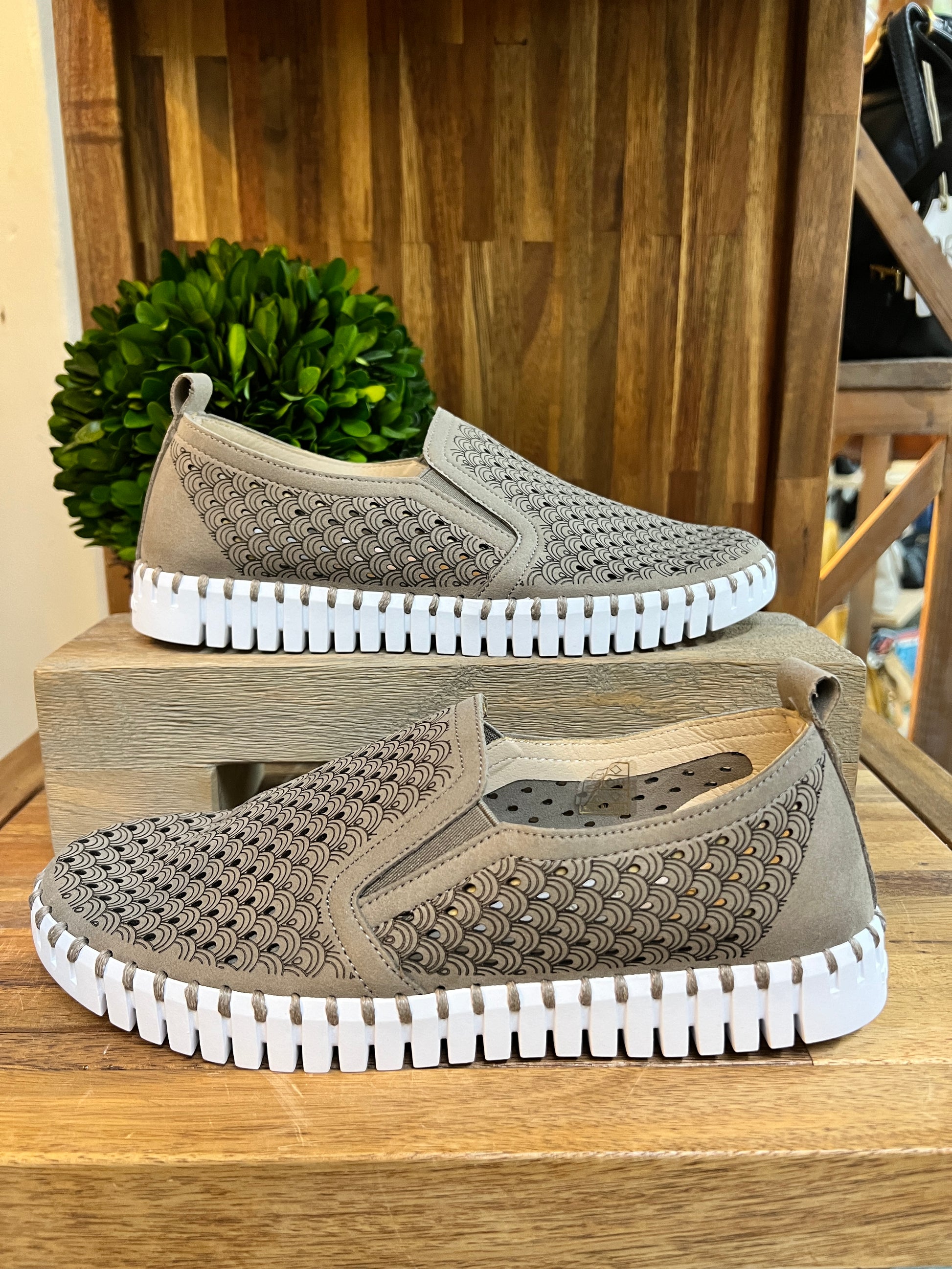 This light weight shoe by Ilse Jacobsen is perfect for any occassion. The shoe is practical, very comfortable and has a great appearance. With its flexible outsole made of natural rubber, and upper with laser cut pattern, which makes it breathable, makes it the perfect travel shoe. The shoe is made of recycle microfiber, and comes in all kinds of colours, from luxurious basic colors to bright happy colors, with matching stitching. Elastic panels on the sides. The upper construction is made without any glue. This cool and practical shoe is an absolute musthave, and will never go out of fashion.
